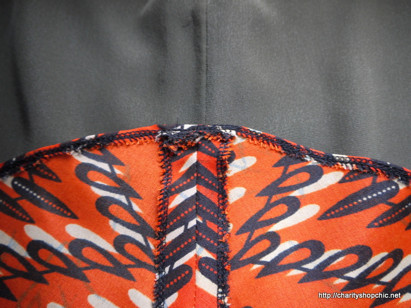 I cut a new panel from the orange fabric. I cut the back slightly curved so there is a slight ruffle there, which moves as I walk (in place of a vent).
