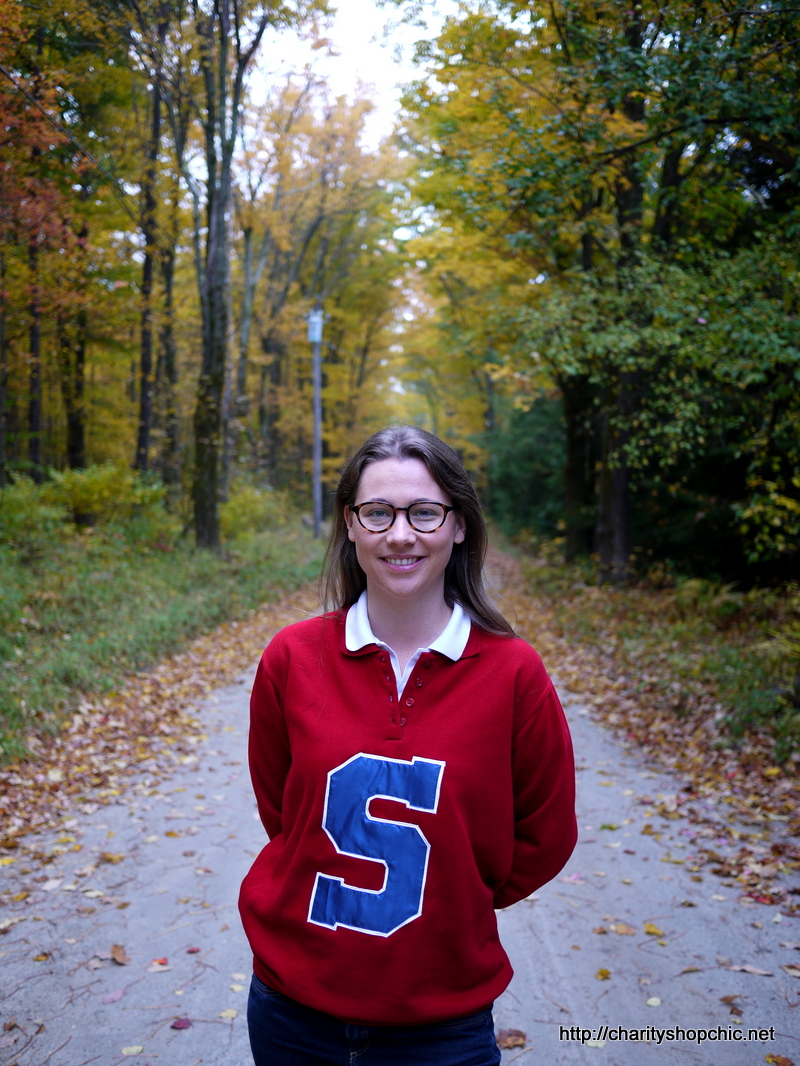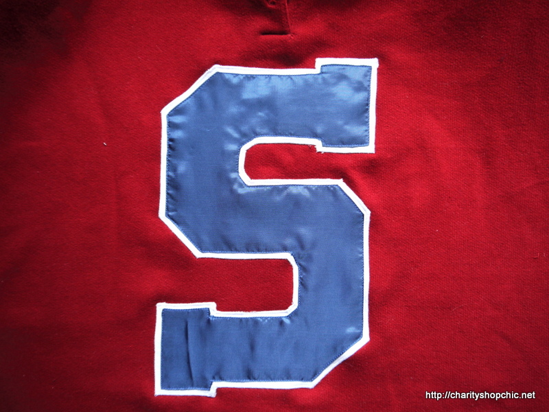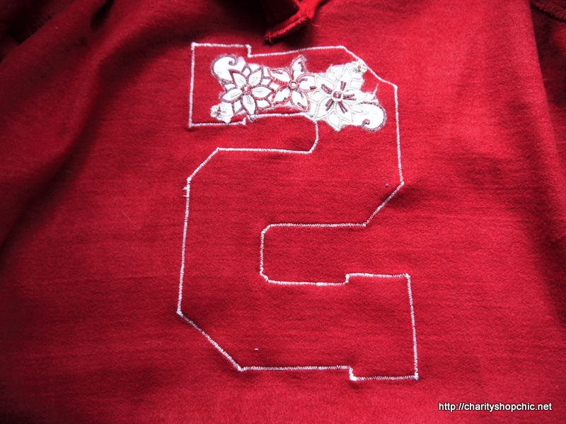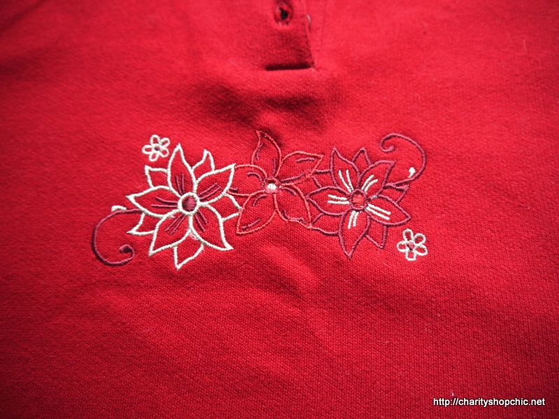 Yes, another red jumper! This size 22-24 sweatshirt had a rather ugly motif embroidered on the front.