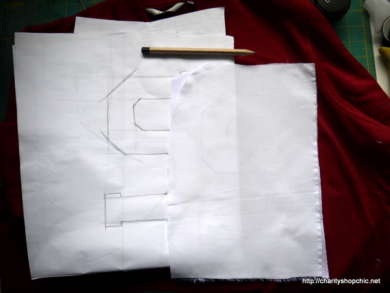 Obviously, the motif had to go. I wanted an American sportswear look in red, white and blue for my trip, so I had to come up with something to cover it up.
