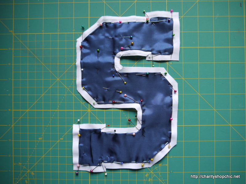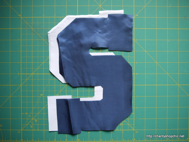 I drew out the shape of my S on a piece of paper and transferred it to some scraps of blue and white fabric.