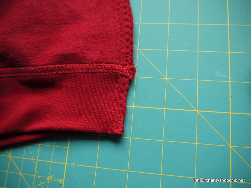 Thanks, Kasia! In the case of this sweatshirt, I cut the edges off, then made the seam, then zig zagged both edges together on my regular machine when I realised it was fraying/shedding. I could have zig zagged first. I could have zig zagged both edges separately to allow the seam to be pressed open (not really necessary here). I could have used my overlocker, but that would have meant buying 3-4 rolls of red thread. There isn’t a right or wrong answer.