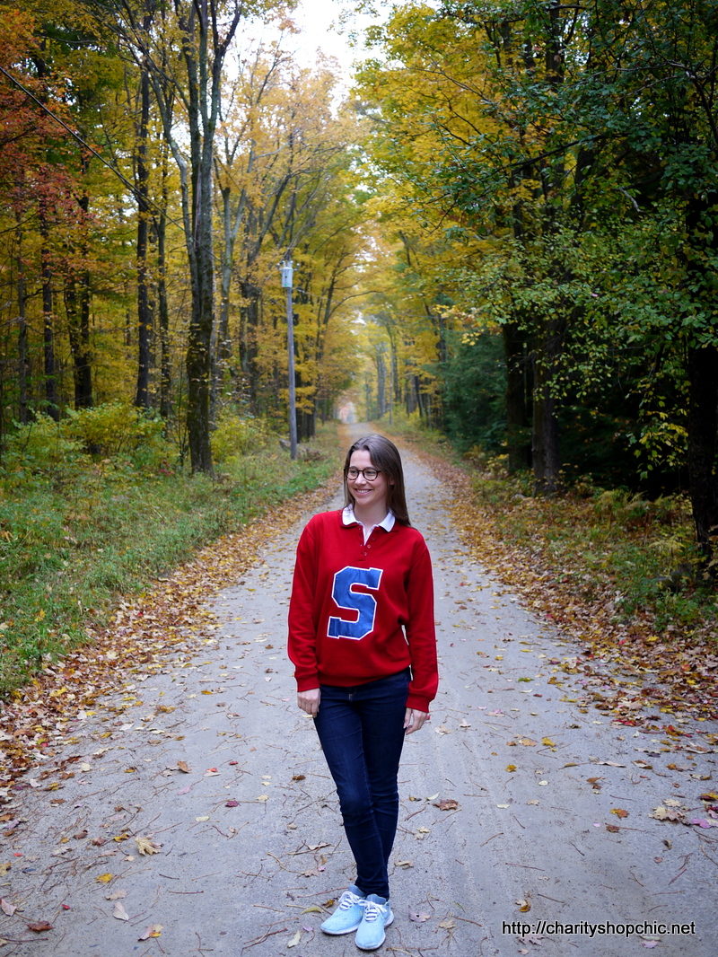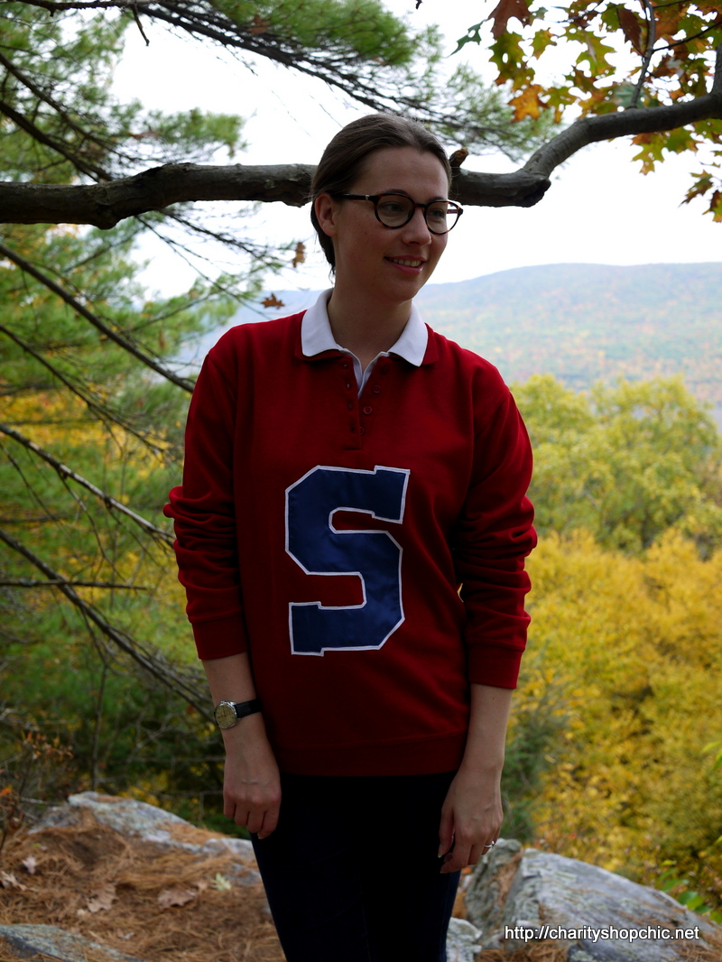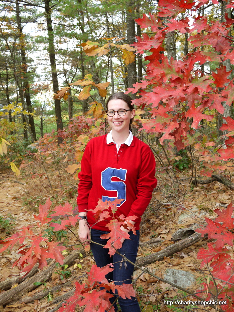 Here are some better pictures of the sweatshirt with the Connecticut foliage.