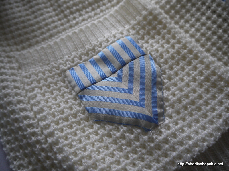 You’re back! Lovely idea and so well executed as usual! I do like that cardi, those waffle knits were all the rage when I was at school in the Eighties. Will keep an eye out for nice silk ties now, apart from a mad idea for a skirt I was struggling to think what to do with them so have always passed them by.