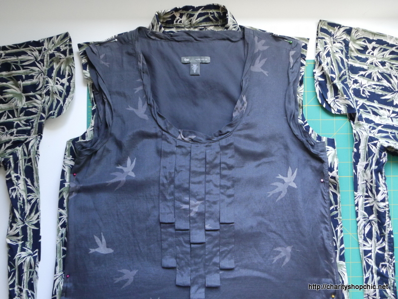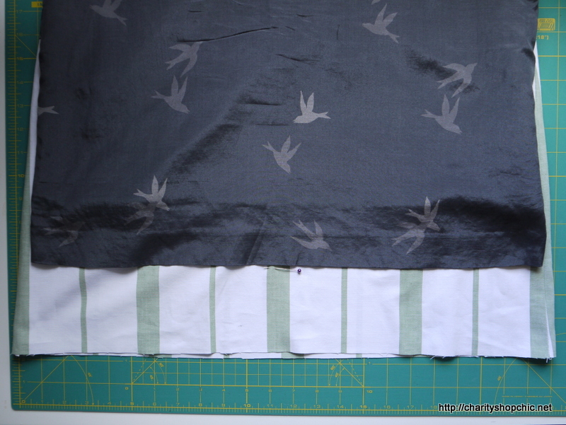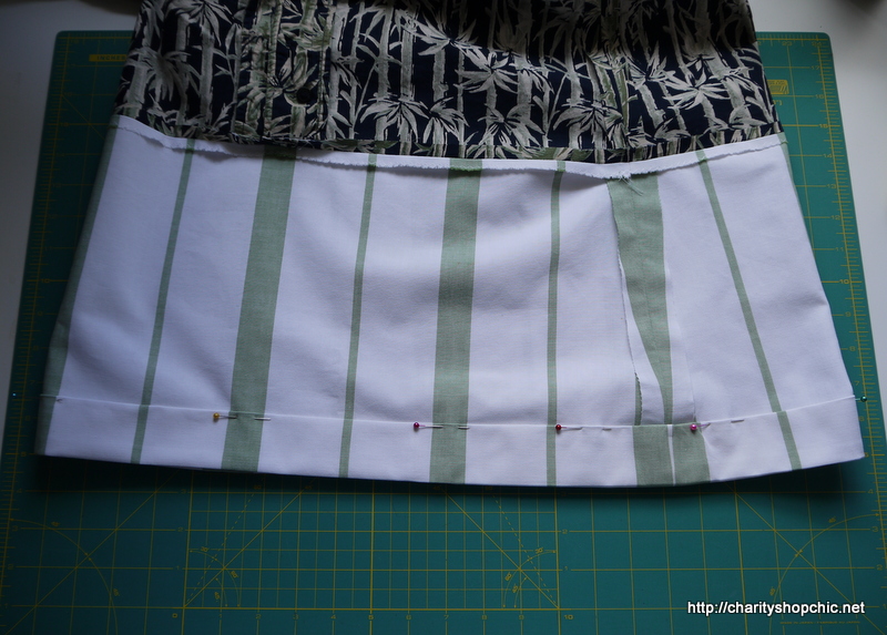My thoughts then turned to adding the contrast panel. I actually trimmed off the hem of the original shirt, knowing I had plenty of length in the sheet panel.