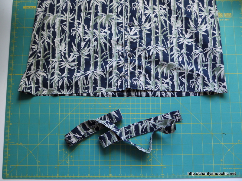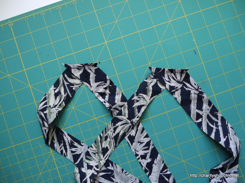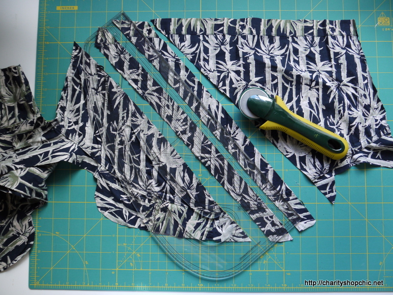 I cut 3cm bias strips from one of the shirt sleeves.