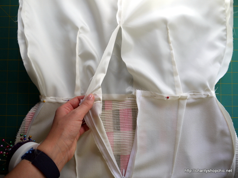 I cut the back from some off-white crepe which was in stash (probably could have done with being a bit thicker), and a matching lining.
