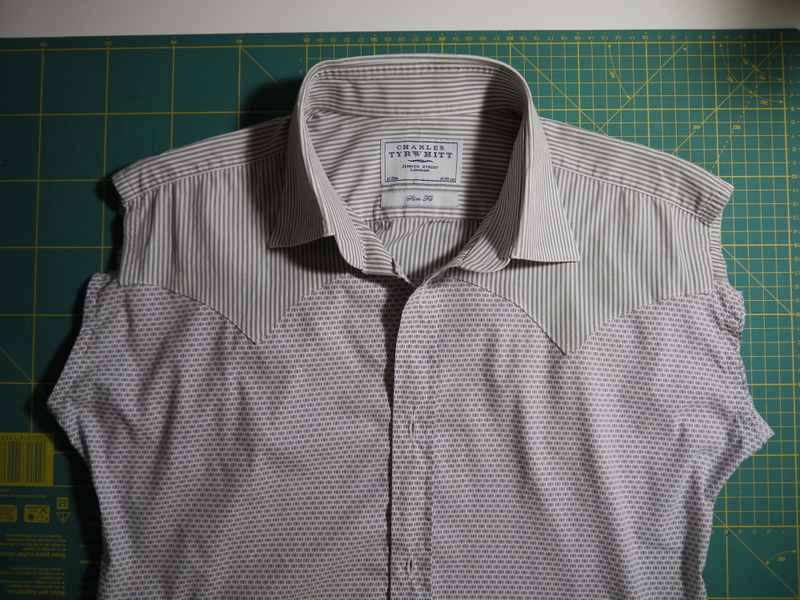 My ideas for combining contrasting fabrics in shirts were limited to bowling shirts and cowboy/country and western shirts. Since I already have a bowling shirt in my wardrobe, I went for a cowboy shirt.