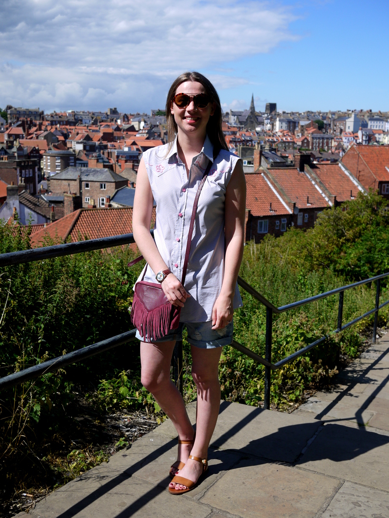 I made flat felled seams at the sides, in keeping with the original shirt.