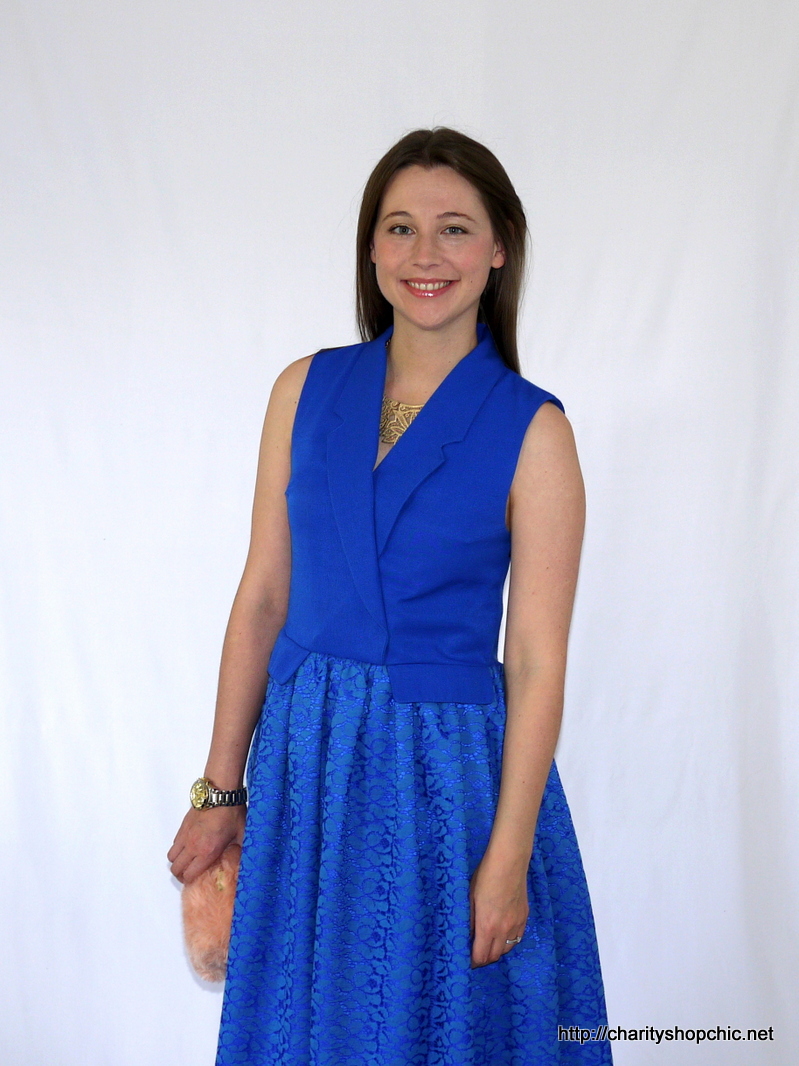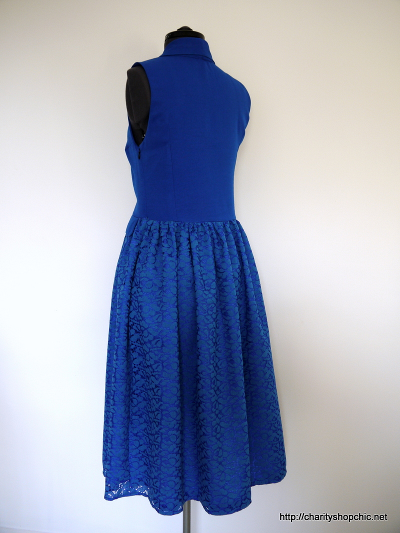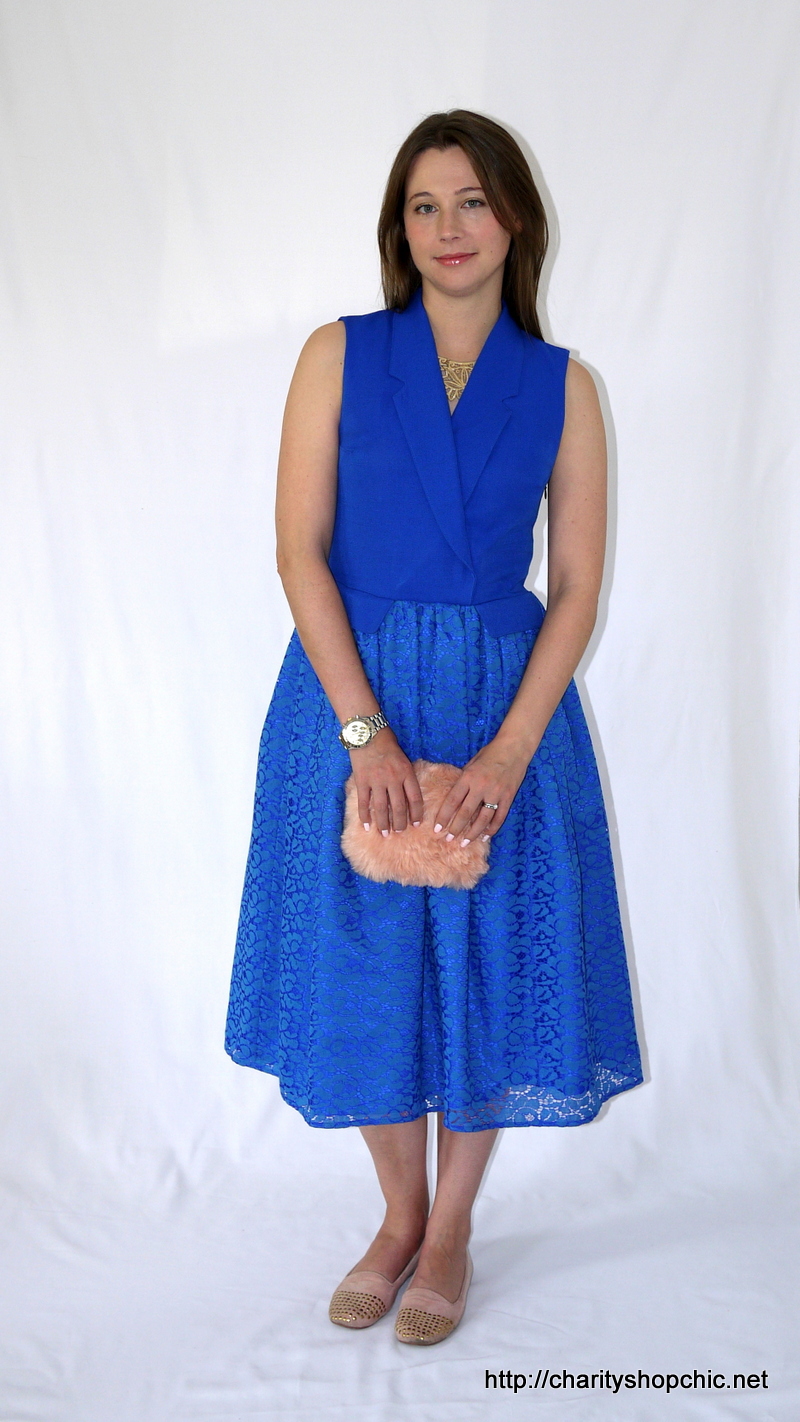 Wow! Love the dress, and that colour really suits you. Great colour match on the lace too. I’m trying to figure out why the original jacket looks so drab yet the colour is almost electric blue, must be the style. Great job!