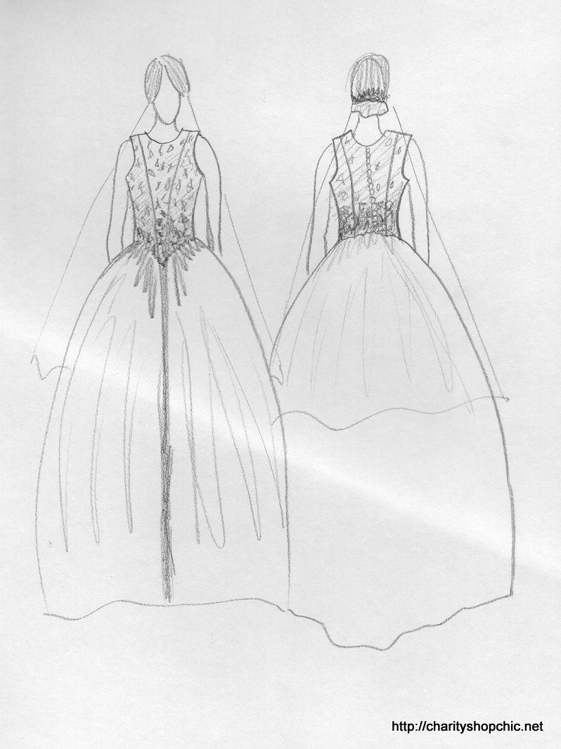 I looked at lots of designers, lots of bridal sites and even tried some dresses on to get a feel for the shapes. Here are some of the images I was working from.