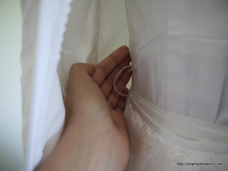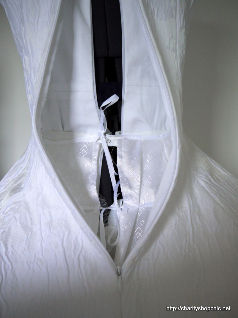 I actually covered the three sellotaped joins in white grosgrain because I couldn’t bear the thought of something that ugly being in the dress.