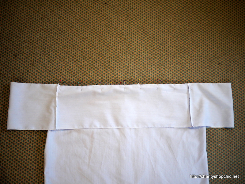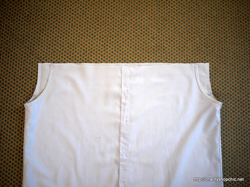 I finished the top edge of the body, sewing the button plackets together along the top edge. The button placket will become the centre back of the new top.