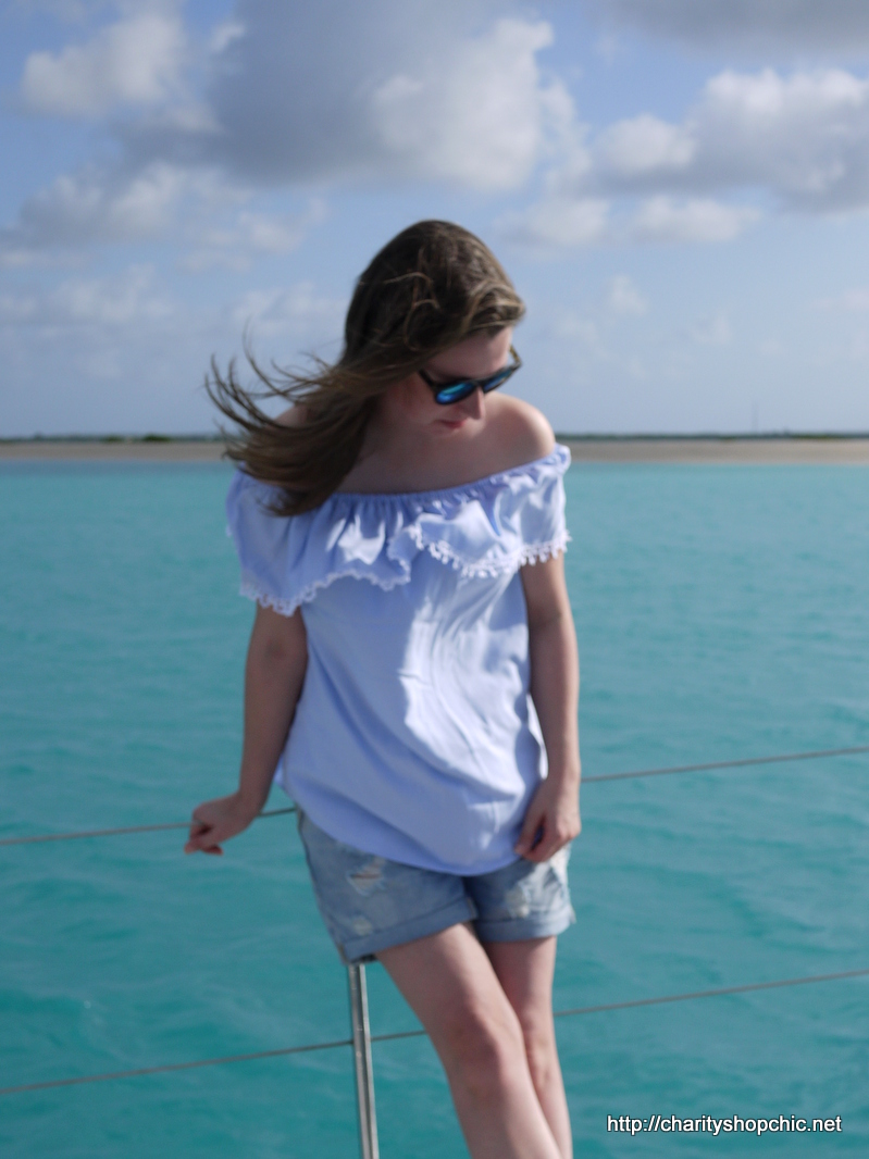 I was heading out on a holiday-season holiday to a hot place, but digging out my summer wardrobe in winter felt a bit strange. To spruce it up a bit, I wanted to add an off-the-shoulder top of the type that was really fashionable this summer. You know the ones. They were everywhere! This is a very straightforward idea that I’ve been thinking about for a while. If you’ve got an old summer shirt in your wardrobe that could do with a bit of TLC, this could be just the ticket.