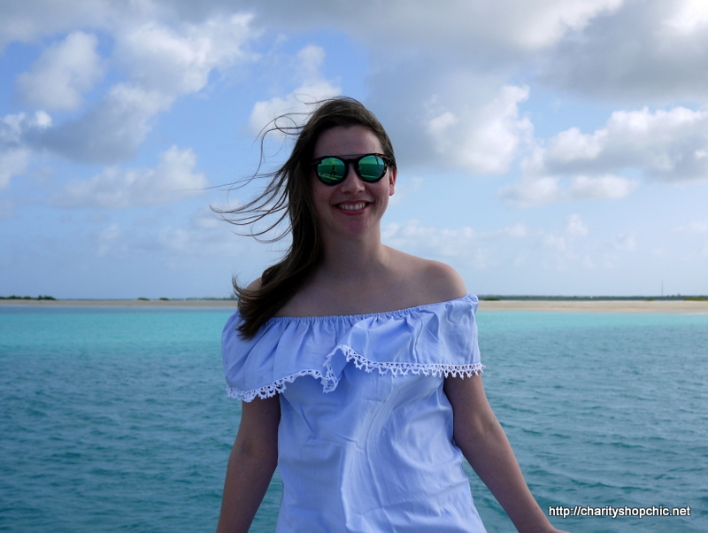 Here’s how it looks on! It was a very windy day off the coast of Barbuda, but you get the idea. And it stayed ‘up’ despite the breeze.