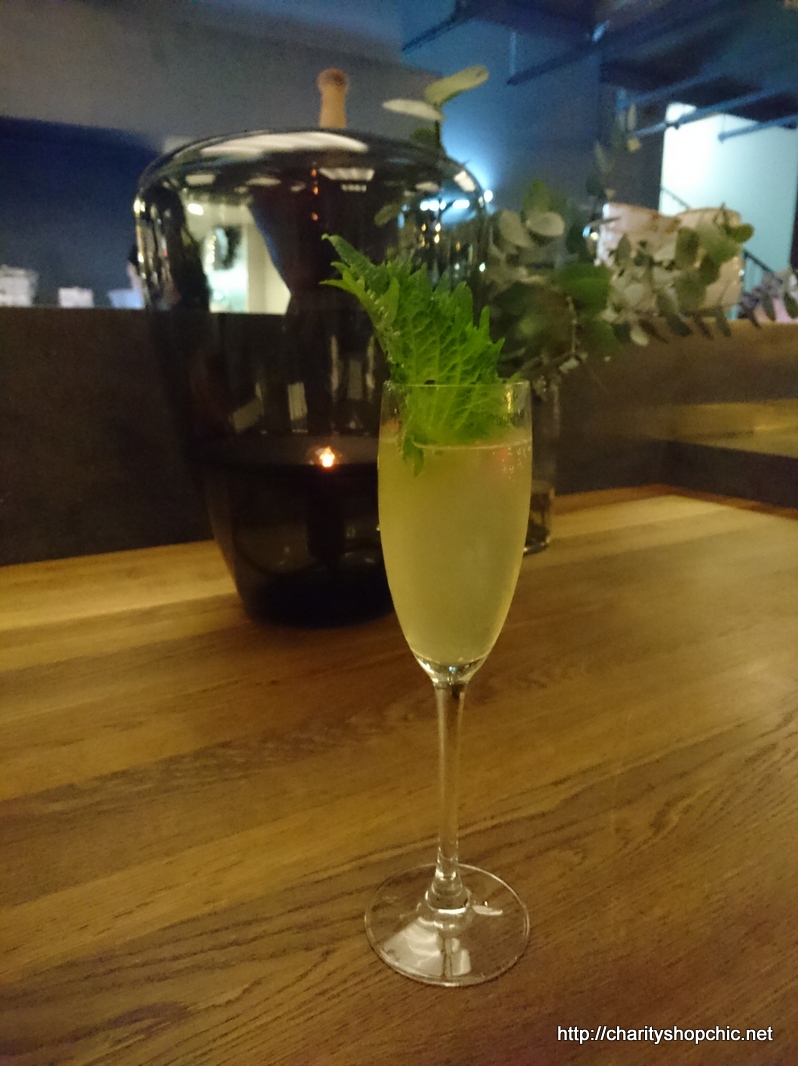 I can also recommend the Nippon ’75 cocktail, which I think is supposed to be a Japanese twist on the French ’75, substituting the Japanese spirit Shiso Shochu for the gin. It comes with a large shiso leaf as a garnish.