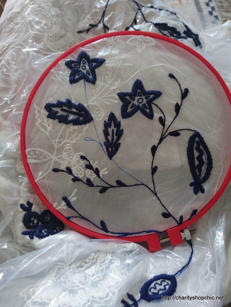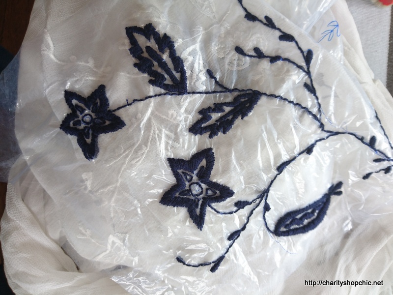 Amazing refashion, I absolutely love the blue embroidery against the white, it’s so effective. The shape of the vest and neckline are both lovely. I often buy things in charity shops but usually things to wear as I find it hard to envision what it could turn in to. You give great inspiration, thank you