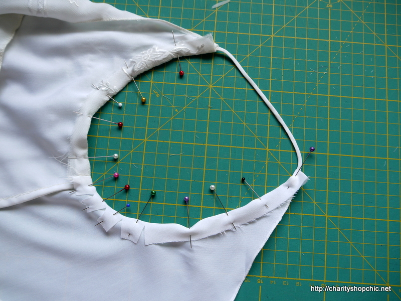 After securing my rouleau loop straps I did the same finish all the way around the front and back necklines and armholes.
