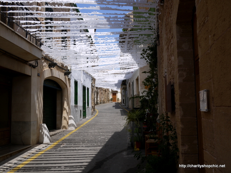 We also walked around Alcudia – the old town – which is stunning! All the streets were decked out in white streamers which provided some shade as we were walking around. And the houses all have dark green shutters.