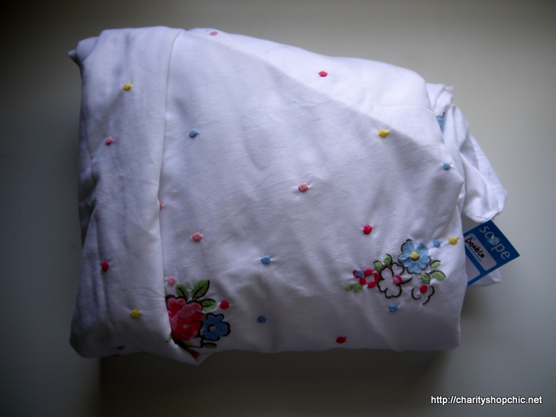 Sheets are perfect for dye projects. This double duvet cover came from the Scope shop in Lewisham (£6). It’s actually 50% cotton, 50% polyester, so it will still take the dye, but the colour won’t be as strong as it would have been with 100% cotton.