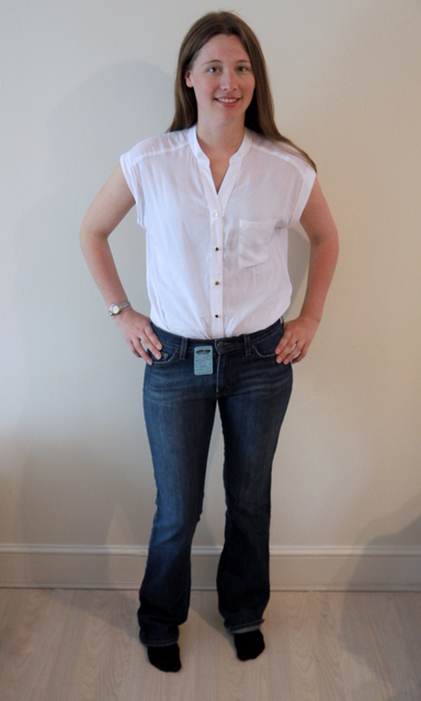 They fit relatively well when I bought them as part of my massive haul from Thrift Town in San Francisco a few months back ($5.99). Unfortunately boot cut is not the most flattering on me… I only wear skinnies!