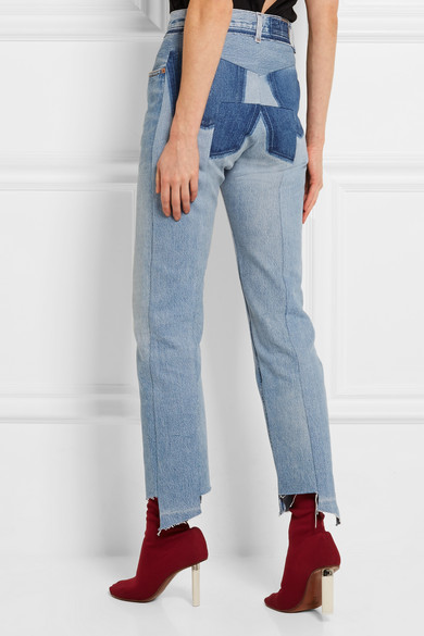 Well, the look I’m hoping to emulate is a designer pair of jeans which is made from… old jeans. These Vetements Fall 2015 jeans originally retailed at $1450 (images borrowed from Net a Porter) and they came in several different styles. The label basically bought up loads of vintage Levi 501s (!!) and cut them up using their own pattern to make an interesting new style.