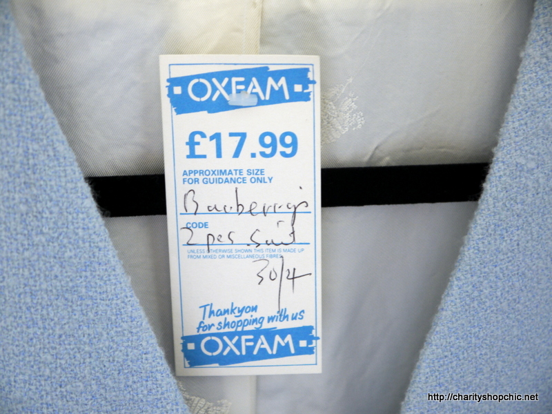 I’ve had this ice blue Burberry wool suit for ages. I pounced on it, magpie-like, in Streatham Oxfam and managed to get it for £17.99. I was so excited about this suit when I bought it that I didn’t really think too hard about what I was going to do with it, just that £17.99 seemed like a bargain, even though it didn’t fit AT ALL. The skirt’s too big. The jacket, well, the jacket is just wrong. Too big, huge shoulders, grubby hem, sleeves far too short. Those buttons though. The buttons are incredible – and there are three on each cuff!