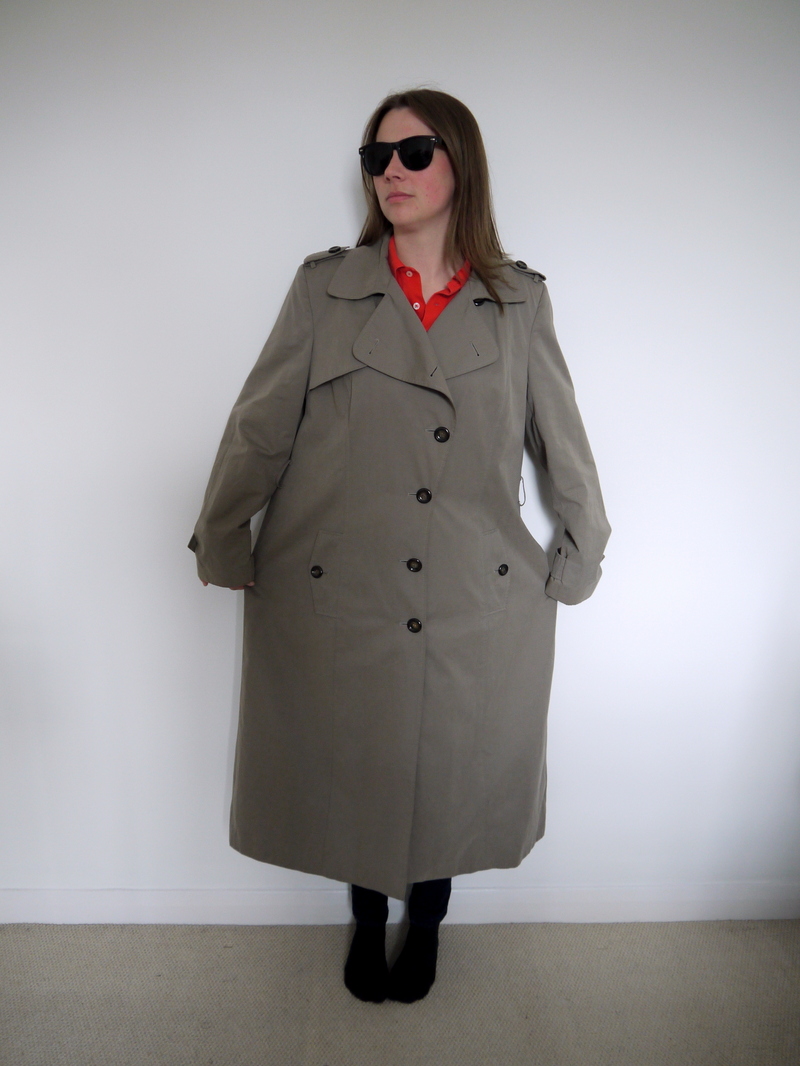 This enormous trench coat had potential, but had clearly seen better days. The size, obviously, was completely wrong for me and made me look like a spy from the 1980s and/or Inspector Gadget.